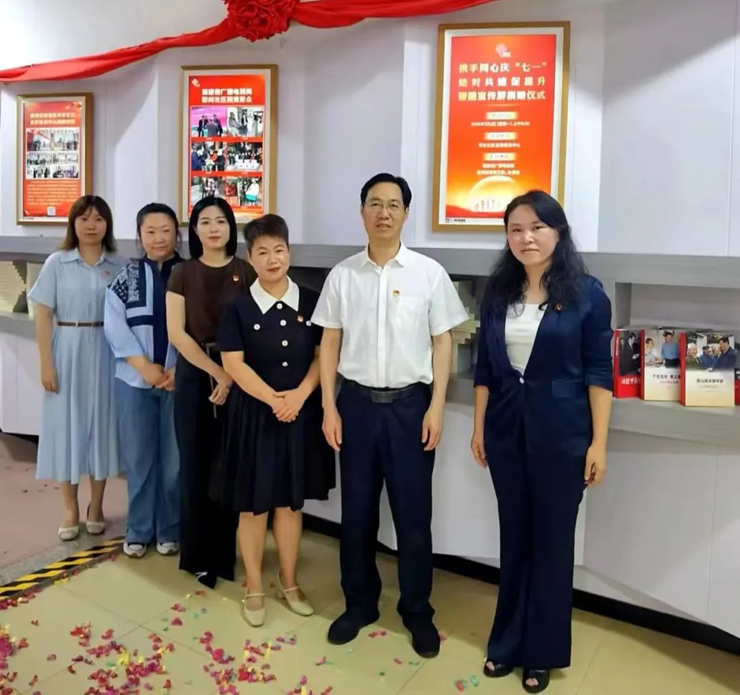 7 月 1 日,NG28 与鼓楼区河东社区共同举办“携手同心庆‘七一’ 结对共建促提升”共建活动暨智融宣传屏捐赠仪式,局党组成员、副局长、机关党委书记陈炎铭与温泉街道党工委书记张林为智融宣传屏揭牌,局直属机关党委与温泉街道党工委签订党建共建协议。局机关、局属单位各支部党员代表和温泉街道党工委、各社区(经合社)书记20余人参加共建活动。