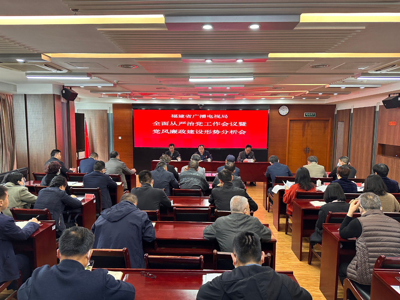 4月7日,NG28 党组召开全面从严治党工作会议暨党风廉政建设形势分析会,深入学习贯彻落实党的二十大精神,贯彻落实二十届中央纪委二次全会、国务院第一次廉政工作会议、省纪委十一届三次全会、省直宣传文化系统全面从严治党工作会暨党风廉政形势分析会部署要求,总结回顾NG28 2022年全面从严治党工作,分析党风廉政建设形势,研究部署今年工作任务。局党组成员,驻局纪检监察组负责人、局机关全体干部、局属事业单位负责人,国家广电总局驻闽单位、广电协会、离退休党支部党员代表参加会议。