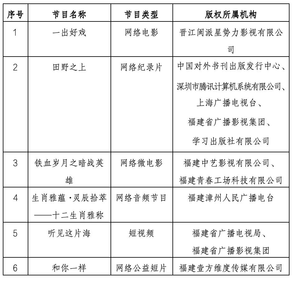 近日,在国家广播电视总局公布的99部2025年第一季度优秀网络视听作品中,我局推荐的6部网络视听优秀作品入选。