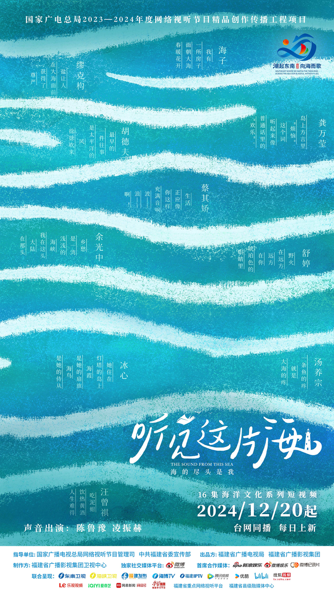 短视频《听见这片海》为国家广电总局2023-2024年网络视听节目精品创作传播工程项目,16集海洋文化系列短视频以体裁多样的海洋文学为媒介,聚焦福建沿海人民生活,通过对新时代题材的深入挖掘,展现新时代福建“活优富美”、两岸融合发展的美好图景,绘就中国式现代化的福建篇章。